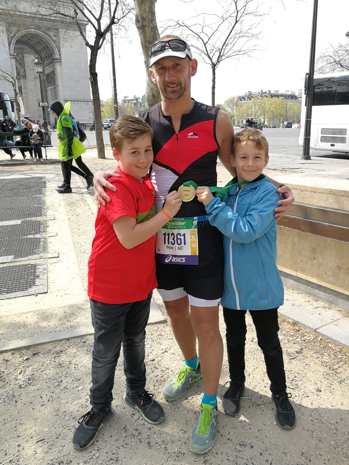 Die Stimmung nur aufgesaugt hat Peter Frittum bei seinem Marathon in Paris! Doppelte Motivation da erstmals auch die beiden Jungs im Ziel gewartet haben! Gratulation dem Finisher!